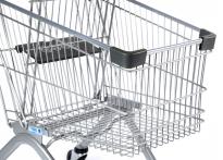 購物車作為商超內唯一給顧客使用的設備,越來越趨向于高端化和人性化,QHDC在這一點與您不謀而合,沉穩(wěn)大氣的灰鉆噴涂配上灰色的塑料件,整個購物車讓顧客特別踏實,愉快購物。